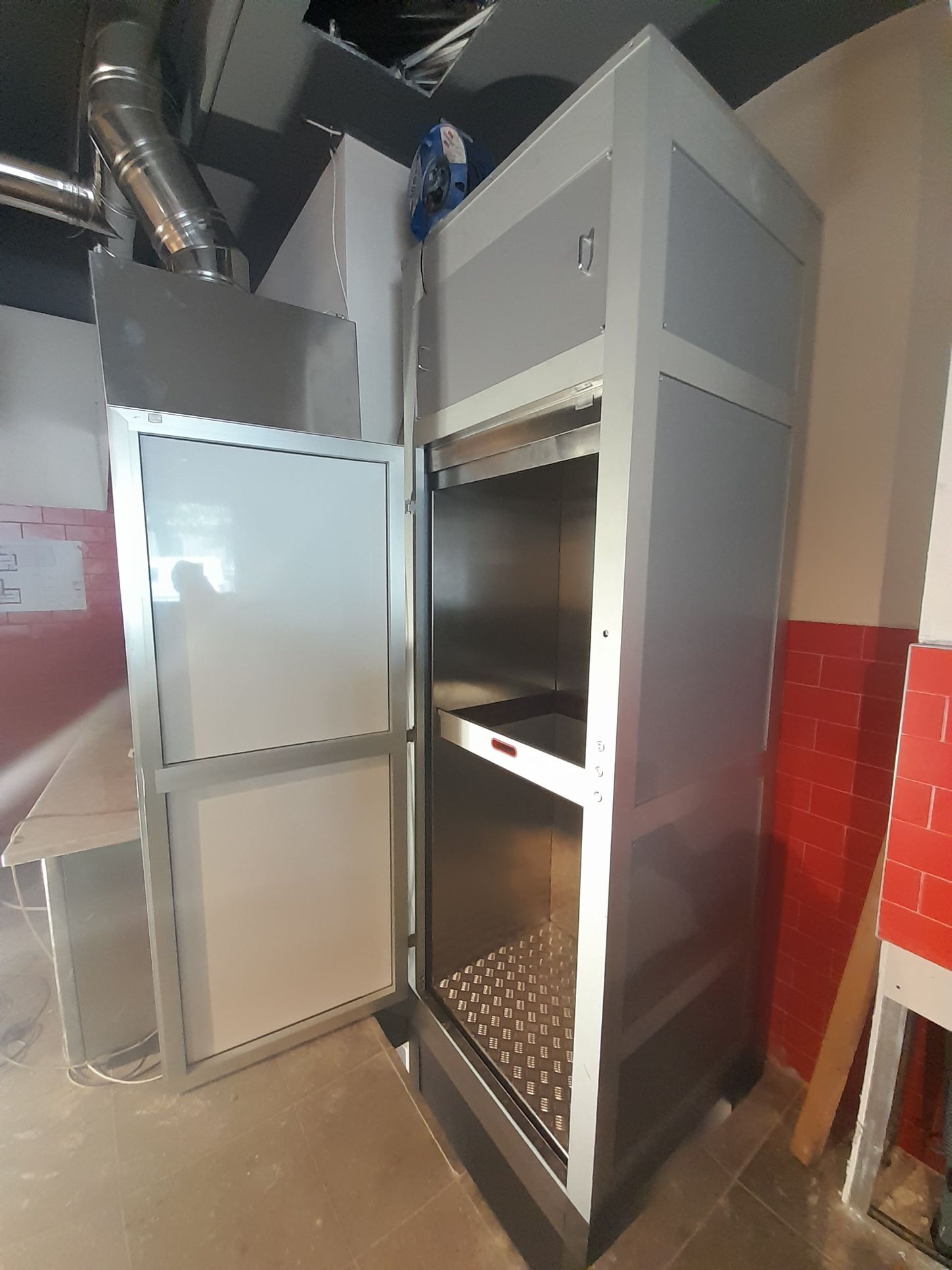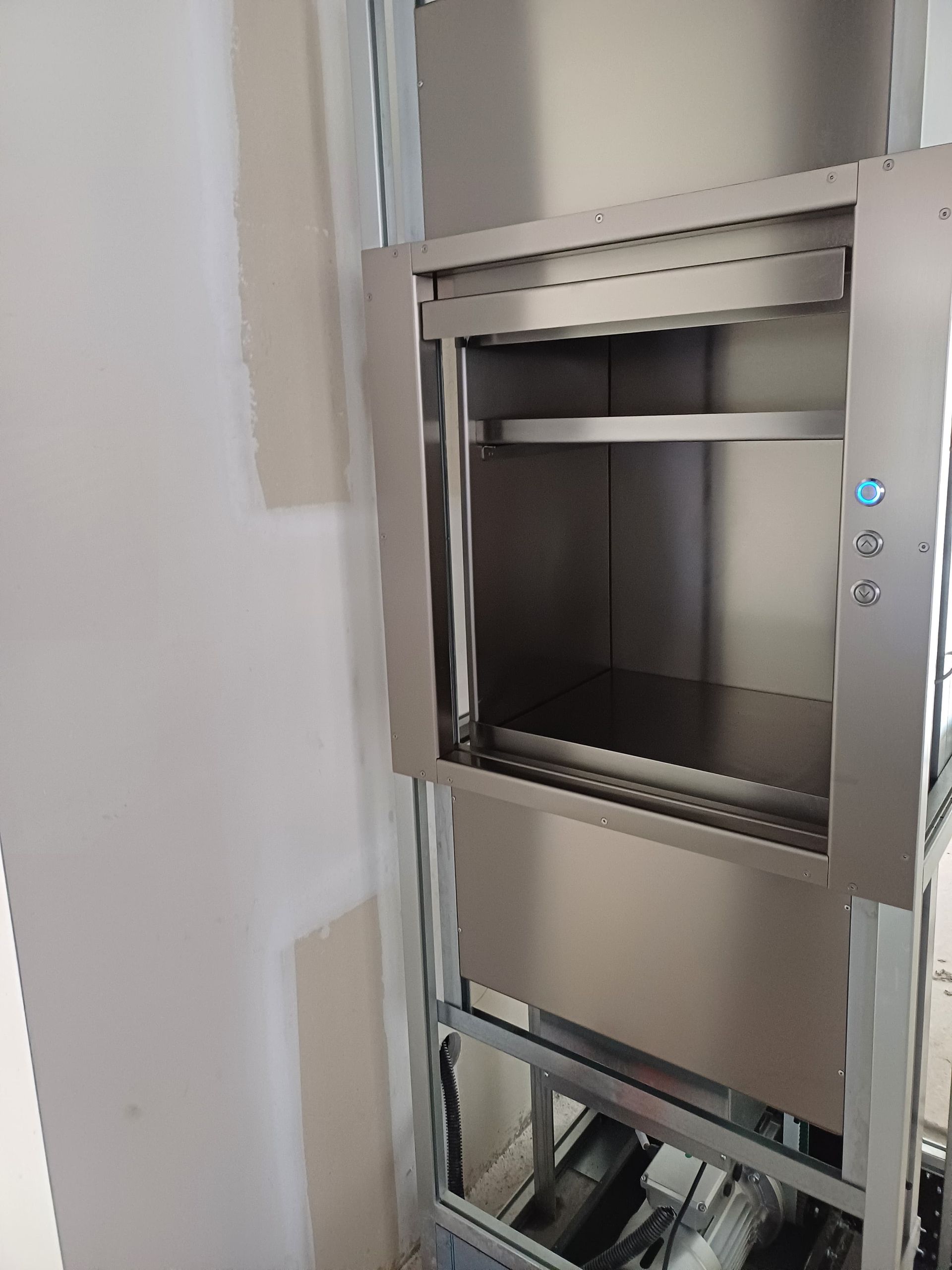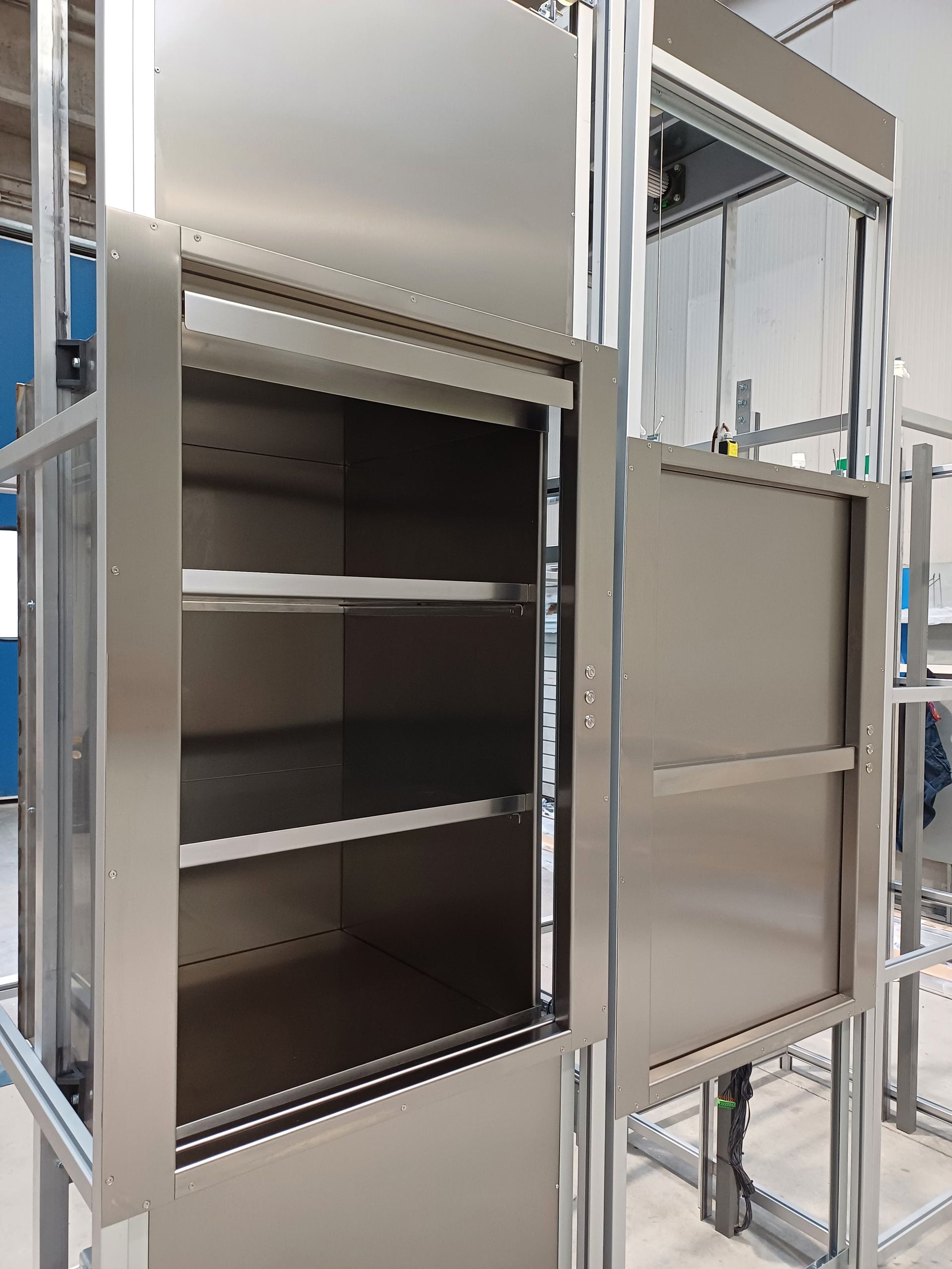 è un piccolo montacarichi per il trasporto di bevande, generi alimentari e le loro componenti. E’ realizzabile su misura, con una struttura portante in alluminio anodizzato, porte di piano e cabina in